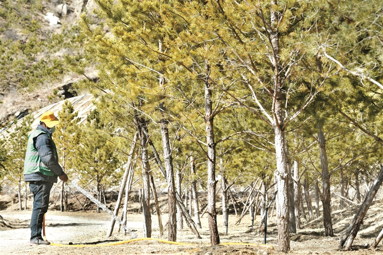 山上有了樹(shù)遠(yuǎn)遠(yuǎn)不夠,還要進(jìn)一步提高樹(shù)木的成活率,而樹(shù)木的成活率離不開(kāi)后期的管護(hù)工作。因此,每年春天山體解凍后,就要保證每周給樹(shù)木澆一次水。另外,由于拉薩紫外線強(qiáng)度大、水分蒸發(fā)量高,有時(shí)還需要給樹(shù)木輸送營(yíng)養(yǎng)液……因此,一批批踏著晨露、身披晚霞的樹(shù)木養(yǎng)護(hù)工人每天穿梭于山間,檢查樹(shù)木的生長(zhǎng)情況,進(jìn)行補(bǔ)植補(bǔ)栽、灌溉等工作。拉薩市圣地園林公司相關(guān)負(fù)責(zé)人多布拉告訴記者:“我們從3月8日開(kāi)始復(fù)工,作為園林工作人員,搶抓季節(jié)很重要,所以我們現(xiàn)在正在進(jìn)行補(bǔ)植補(bǔ)栽?!?/p>