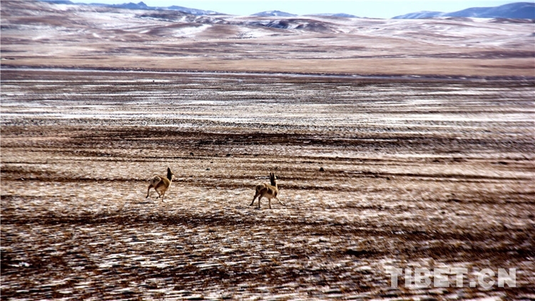 圖為藏北羌塘草原上奔跑的藏原羚 攝影:趙二召
