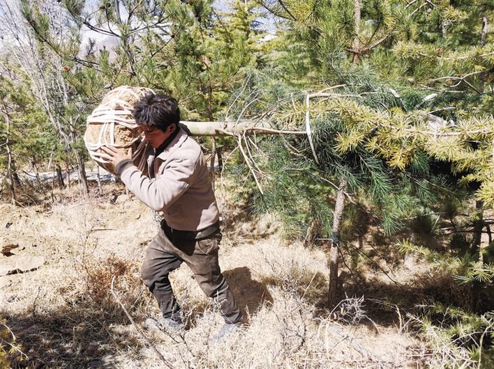 搬運準備種植的苗木。文/圖 記者 李海霞