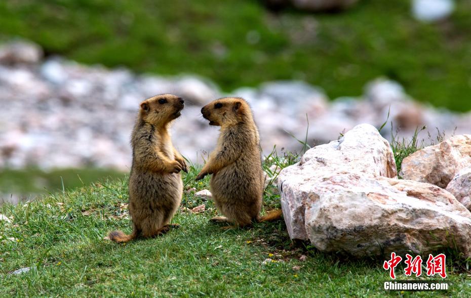 柴達木盆地高原旱獺“談戀愛” 舉止親密呆萌可愛