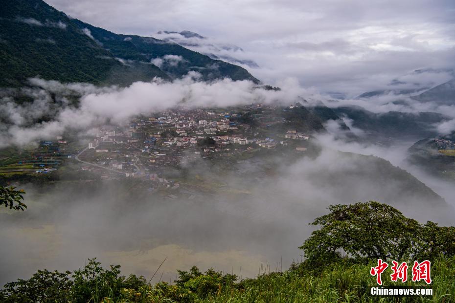 林芝市墨脫縣位于西藏自治區(qū)東南部,有“蓮花秘境”之稱,平均海拔1200米。因地處雅魯藏布江下游、喜馬拉雅山脈東端南麓,這里濕潤多雨,風(fēng)景秀麗,氣候宜人。圖為云霧繚繞的墨脫縣城。 何蓬磊 攝