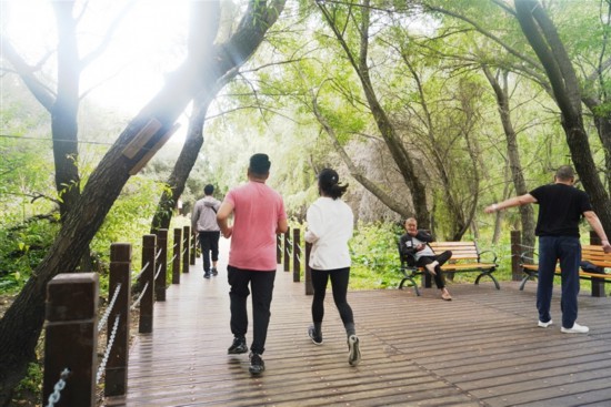 9月初,濕地里的花草樹木從夏天的翠綠到初秋的泛黃,成為了拉魯濕地另一番美景?!∪藗冊诓叫衅溟g,呼吸著充足的氧氣,情緒高漲,邁開輕快而有力的步伐,沿著拉魯濕地步道健步前行,時而駐足觀望沿途美景,時而聚集一方合影留念,不僅鍛煉了身體,又領略了自然風光,也陶冶了情操。