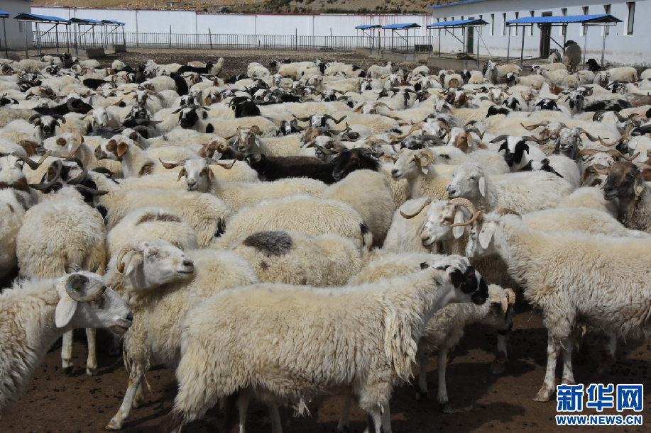 9月14日,亞東縣堆納鄉(xiāng)古汝村崗巴羊生態(tài)養(yǎng)殖合作社里的羊群。新華網(wǎng) 張宸 攝