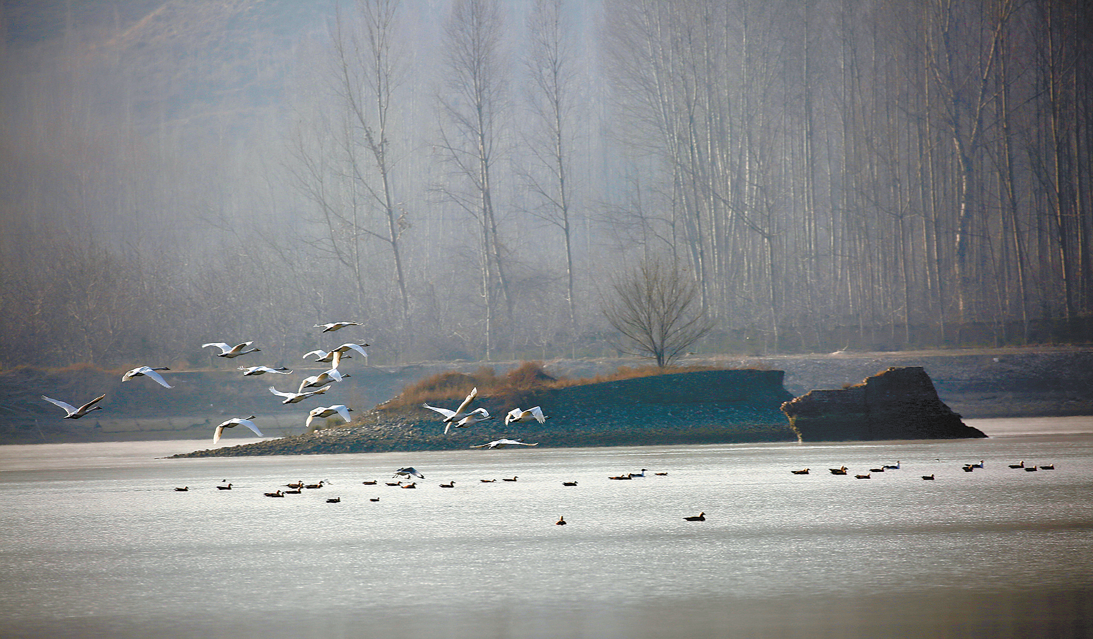 白天鵝學名叫大天鵝,屬國家二級保護動物,它們每年11月離開繁殖地遷往溫潤的南方過冬,遷徙時常成6-20多只的小群或族群遷徙,過去幾乎罕見在我們青海的黃河等水域棲息過冬。近年來,隨著三江源黃河水系生態(tài)環(huán)境的不斷改善,以往不曾見過的珍禽水鳥頻頻光顧黃河等水域安家落戶,這些水鳥中有白鷺、綠頭鴨、赤嘴潛鴨、白骨頂?shù)日淝?,多達10余種,而白天鵝很少來“做客”棲息。