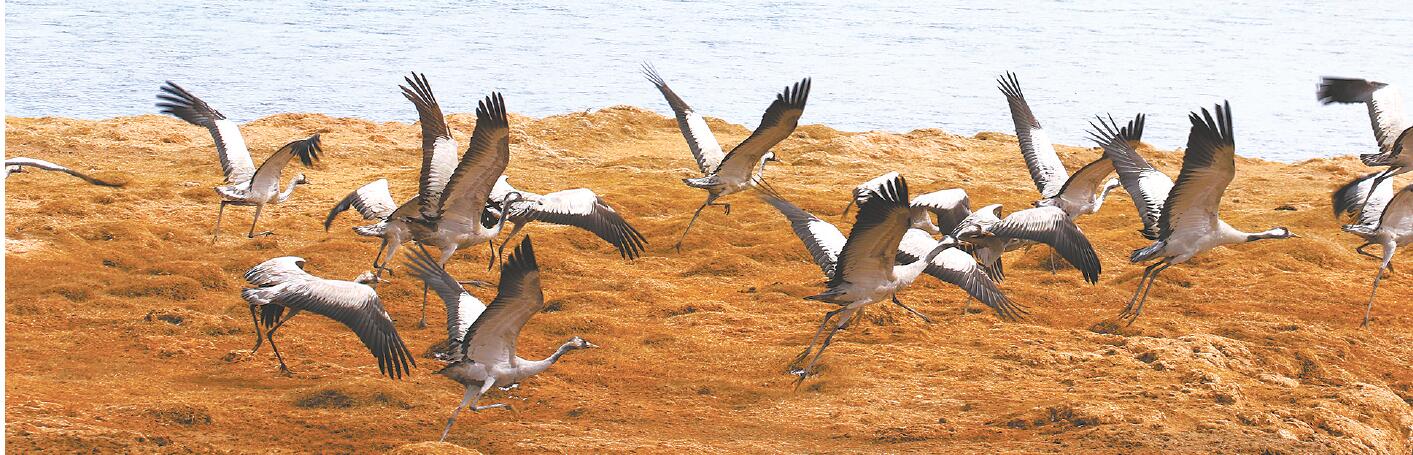 四月中旬的班德湖雪覆冰封,成千上萬(wàn)只斑頭雁棲息在湖心島嶼,它們用喙銜來(lái)草枝、莖葉、干藻、絨羽和碎布,營(yíng)造御寒的巢穴。江源,是鳥類的故園,凍土之上的酷寒之地,成群的雌雁用自己的體溫孵化雛鳥,它們啾啾的鳴叫回蕩在無(wú)際的曠野,這傲立天地間的“驚鴻照影”,不由得我們不為之嘆服!