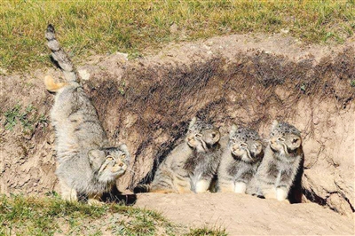 早上8時左右,五六十米外的巢穴中有了動靜,1只兔猻媽媽帶著3只小兔猻出來覓食,和諧的場景沒持續(xù)多久就被遠處虎視眈眈而來的藏狐打破了。兔猻媽媽警惕地盯著藏狐,發(fā)出短促的警報聲,3只小兔猻迅速奔回洞穴,攝影師順勢按下快門,《當(dāng)媽媽說跑步前進》由此而來。