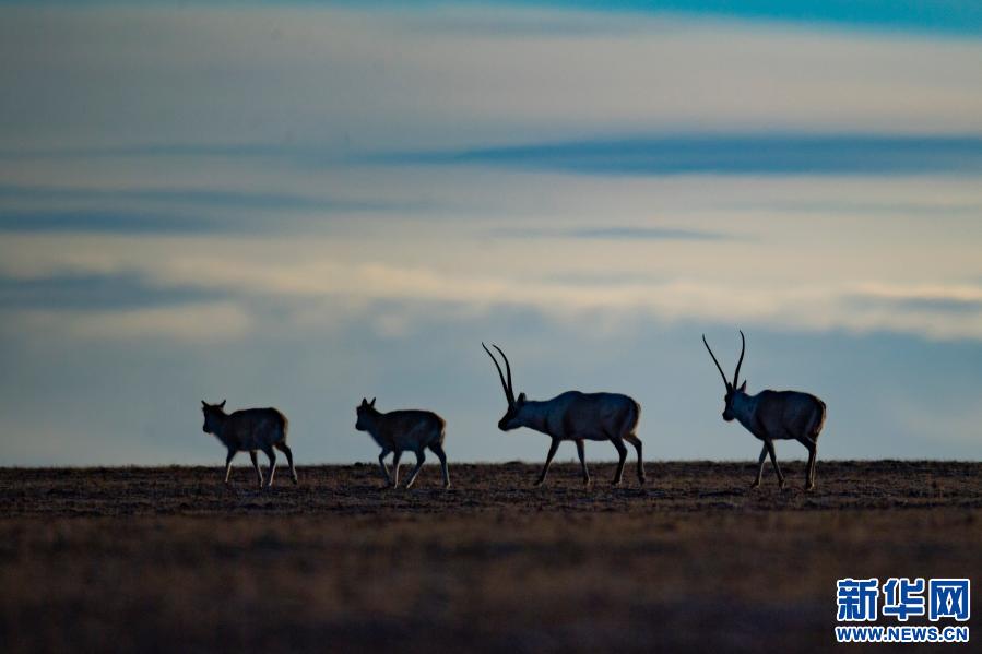 西藏羌塘國家級自然保護(hù)區(qū)的藏羚羊(2018年12月14日攝)。新華社記者 張汝鋒 攝