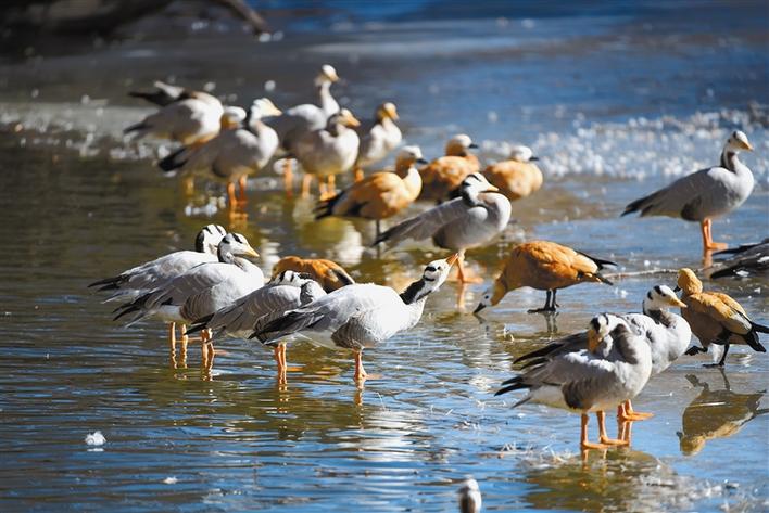 冬日,西藏拉薩市宗角祿康公園成為了鳥兒的“樂園”,公園內(nèi)聚集了大批越冬候鳥,同時,數(shù)不盡的斑頭雁、赤麻鴨、紅嘴鷗在這里嬉戲、覓食,成為公園里的一道風(fēng)景線。