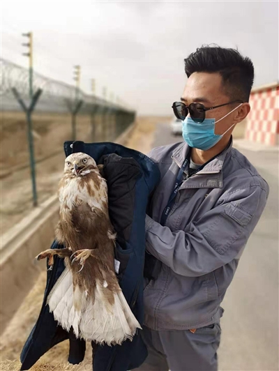 圖為工作人員救助的國家二級保護動物大鵟。