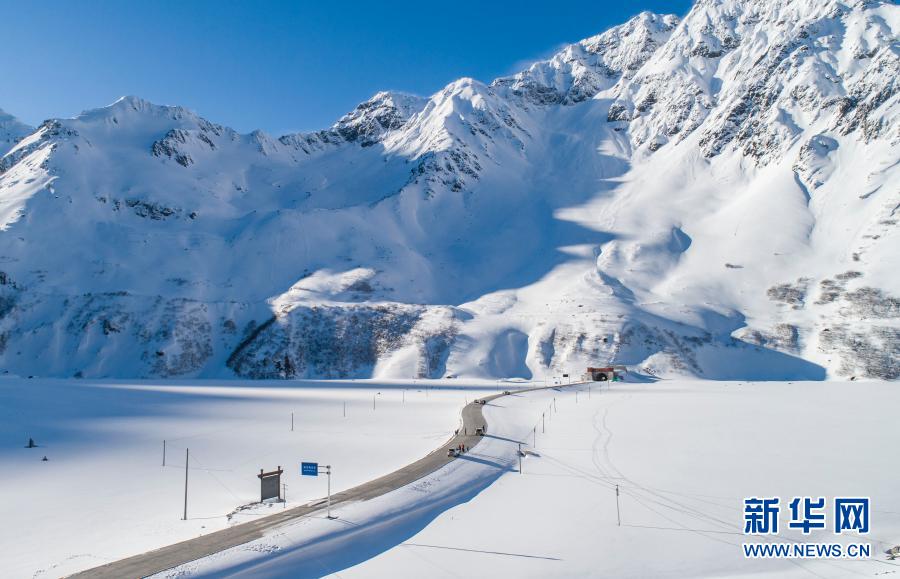 雪后的墨脫公路嘎隆拉隧道入口(2月8日攝,無人機(jī)照片)。新華社記者 孫非 攝