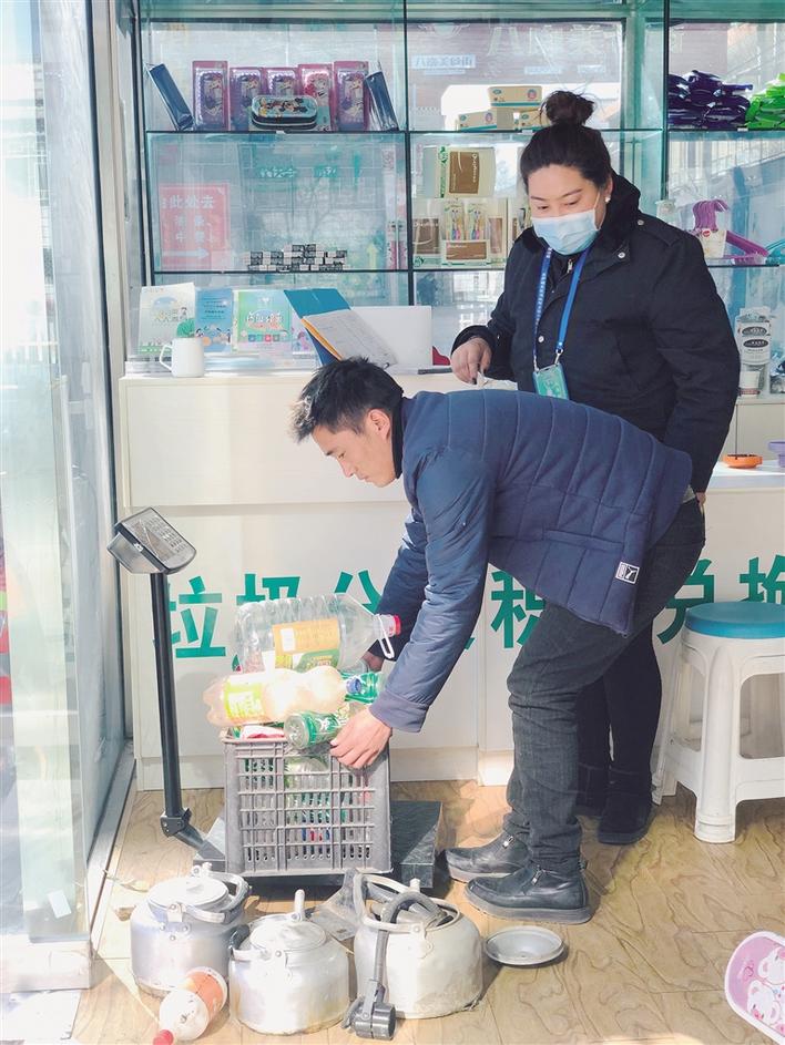 “你看,這些洗潔精、洗衣粉、毛巾、牙膏等生活用品都是我女兒用孫子、孫女寫(xiě)完的作業(yè)本、家里的飲料瓶、紙箱子等生活垃圾兌換回來(lái)的,垃圾變廢為寶為家里減輕了經(jīng)濟(jì)壓力?,F(xiàn)在,我們?nèi)胰硕拣B(yǎng)成了垃圾分類的好習(xí)慣,主動(dòng)將自家的垃圾進(jìn)行分類,統(tǒng)一存放在家里的垃圾分類儲(chǔ)存處。”居住在娘熱路安居苑內(nèi)的措姆老人高興地說(shuō)。