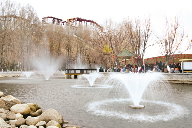 近日,布達拉宮廣場管理處在宗角祿康公園兩處觀景湖內(nèi)新增的16個噴泉已對外開放。記者在宗角祿康公園內(nèi)看到,許多市民游客在湖邊散步、拍照、駐足欣賞噴泉,享受著公園內(nèi)舒適的環(huán)境。