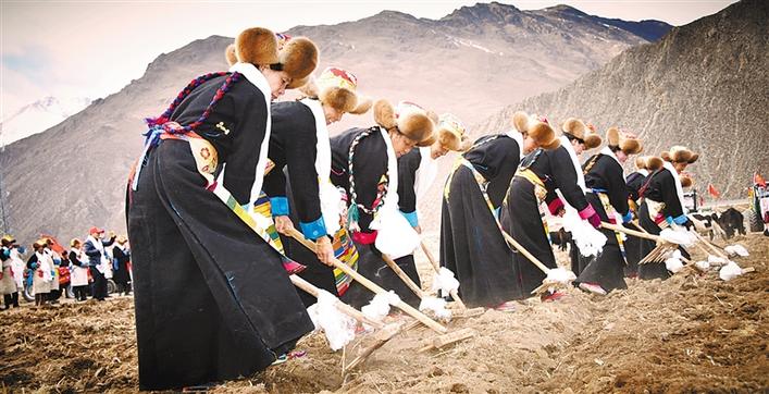 堆龍德慶區(qū)馬鎮(zhèn)馬村一年一度的春耕春播儀式現(xiàn)場。