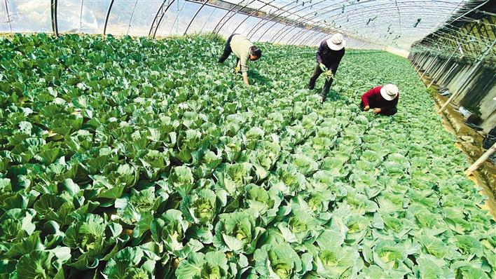 曲水縣聶當鄉(xiāng)當?shù)剞r(nóng)民為溫室大棚內(nèi)種植的蔬菜除草。