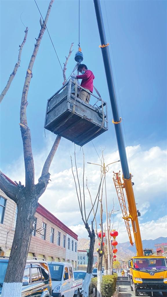 拉薩市園林相關(guān)單位對市區(qū)開展春季樹木修剪工作。