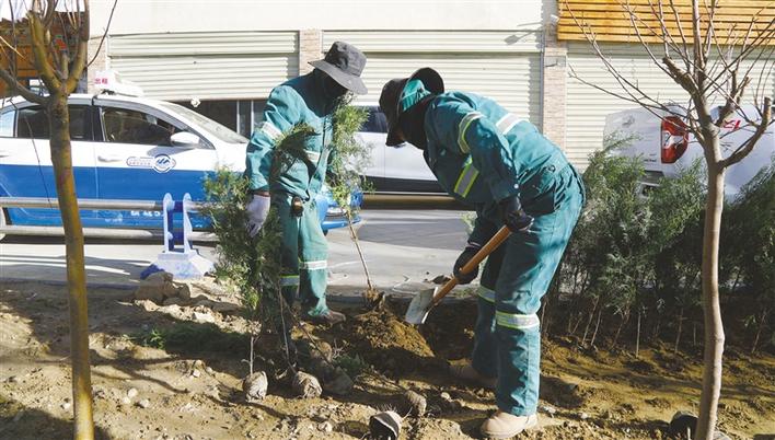拉薩城關(guān)區(qū)潔達園林公司工作人員開展春季市區(qū)補植補栽工作。