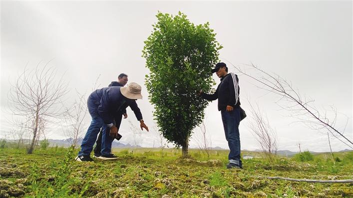 那段時(shí)間,索朗羅布整日待在枯樹叢中,尋找原因。“遇到大風(fēng)天氣,小樹苗被連根拔起,加上我們的種植技術(shù)欠缺,日常護(hù)理不到位,草原鼠猖獗等原因,樹苗還沒長(zhǎng)起來(lái)就死了?!彼骼柿_布回憶初次種樹的時(shí)候,有些心酸和無(wú)奈。