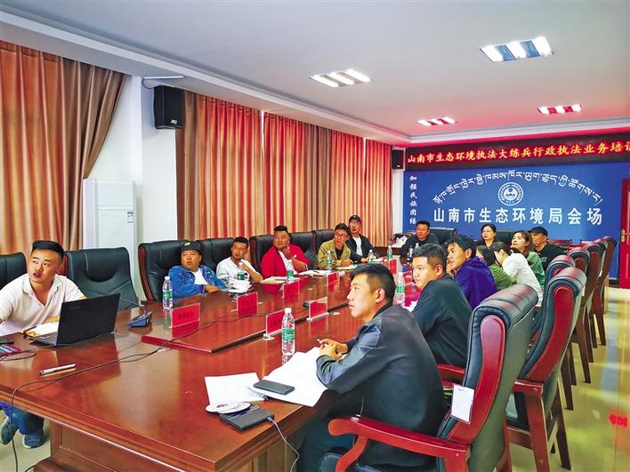 圖為山南市生態(tài)環(huán)境執(zhí)法大練兵行政執(zhí)法業(yè)務(wù)培訓(xùn)現(xiàn)場。巴桑旺姆 次珍 攝