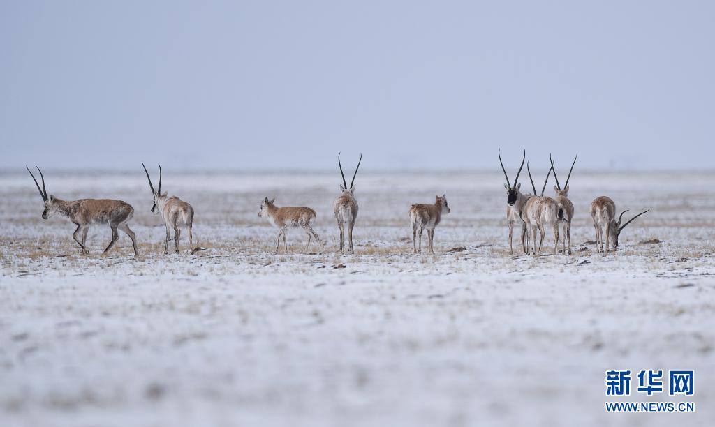 4月20日,藏羚羊在三江源可可西里地區(qū)活動(dòng)。新華社記者 吳剛 攝