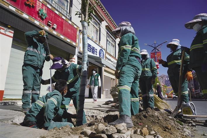 4月23日,記者在拉薩市朵森格路北段看到,道路兩旁正在栽種新樹木——大葉女貞。[詳細] -
