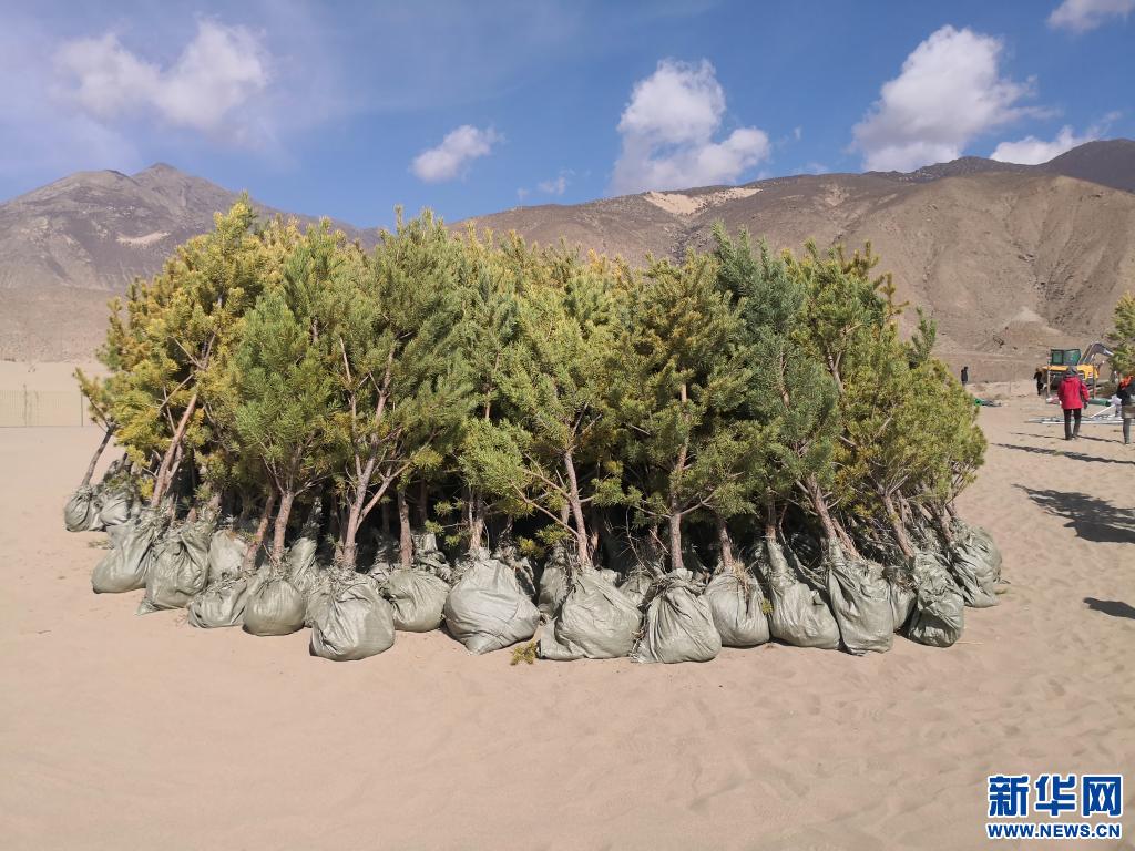 山南市江北“萬人萬畝”義務(wù)植樹造林所用的樹苗(2021年3月7日攝)。新華社發(fā)(資料照片)