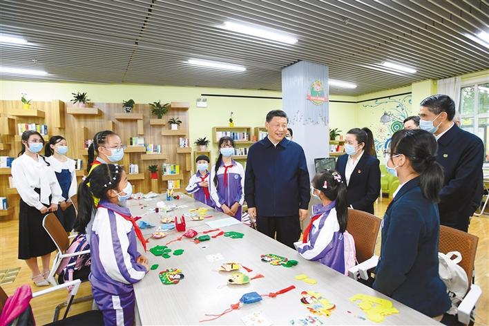 6月7日至9日,中共中央總書記、國家主席、中央軍委主席習(xí)近平在青??疾?。這是7日下午,習(xí)近平在西寧市城西區(qū)文匯路街道文亭巷社區(qū)閱覽室,了解社區(qū)向青少年提供公益性課后托管服務(wù)情況。新華社記者 李學(xué)仁 攝