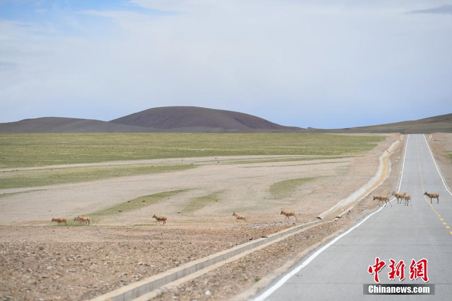 6月20日,藏羚羊群在西藏那曲雙湖縣境內(nèi)穿越公路。羌塘草原位于西藏自治區(qū)北部,平均海拔超過(guò)4600米,是目前中國(guó)海拔最高、面積最大的自然保護(hù)區(qū)。這里是野生動(dòng)物的樂(lè)園,藏羚羊、藏原羚、藏野驢等珍稀野生動(dòng)物與雪山、草地、藍(lán)天、白云,構(gòu)成撼人心魄的壯美畫(huà)面。中新社記者 貢嘎來(lái)松 攝