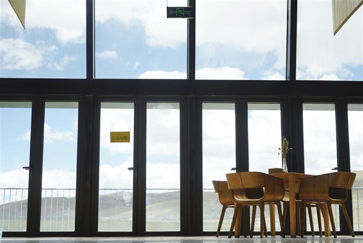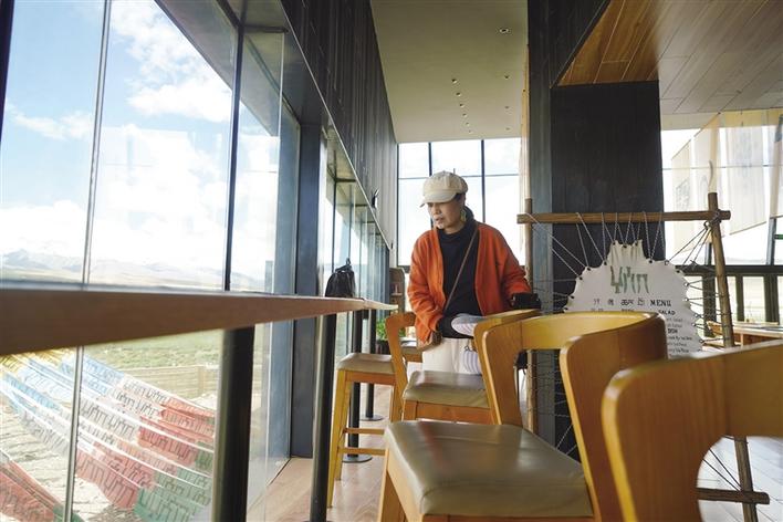 從正門進(jìn)入,穿過牦牛文化空間走廊,便可到能夠以最佳視角欣賞念青唐古拉山的VR觀景臺(tái)。緊鄰觀景臺(tái)右側(cè),是一間擺放當(dāng)?shù)匚膭?chuàng)產(chǎn)品、各類書籍的觀景咖啡廳。該咖啡廳的兩面墻體設(shè)計(jì)為超大落地窗,在此休息的游客可以邊品嘗咖啡,邊欣賞念青唐古拉山及拉多草原的美景。走進(jìn)咖啡廳,記者看到不少在這里休息的游客都在低頭寫著什么,經(jīng)咖啡廳負(fù)責(zé)人介紹:“這些游客是在寫明信片,我們這里不僅提供餐飲,還提供印有本地風(fēng)景的明信片,并同中國郵政合作,幫助游客按時(shí)將明信片寄到他們的親朋好友手中,讓游客們的旅途變得更有意義。”