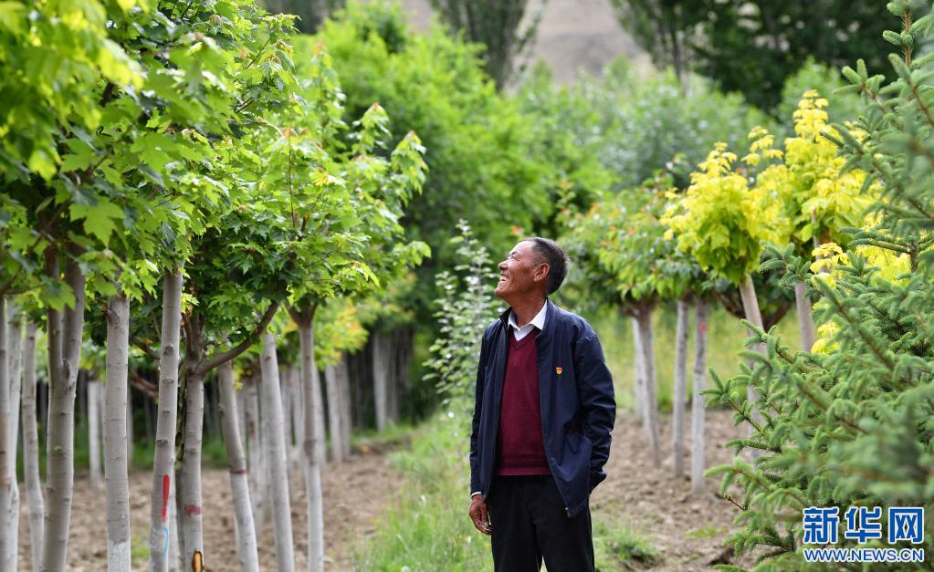山南市扎囊縣某苗圃基地負(fù)責(zé)人邊久在查看基地內(nèi)栽種的樹(shù)苗(7月20日攝)。新華社記者 晉美多吉 攝