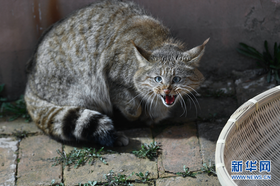 這是5月1日在西寧野生動物園拍攝的一只人工救助的荒漠貓。新華社記者 張龍 攝