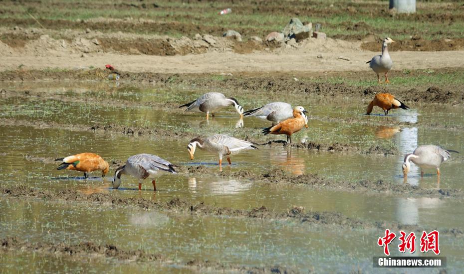 入冬以來,大批的斑頭雁、赤麻鴨等鳥類從藏北地區(qū)的湖泊濕地遷徙到藏南河谷地帶過冬。在河谷沿線的河流、湖泊、農田等地,都可看到這些“小可愛”們嬉戲、覓食,成為冬日里的美麗風景。近年來,西藏不斷加大候鳥棲息地保護力度,候鳥的生存環(huán)境得到有效改善。圖為11月12日,斑頭雁、赤麻鴨等鳥類在西藏山南市扎囊縣境內的農田覓食。 冉文娟 攝
