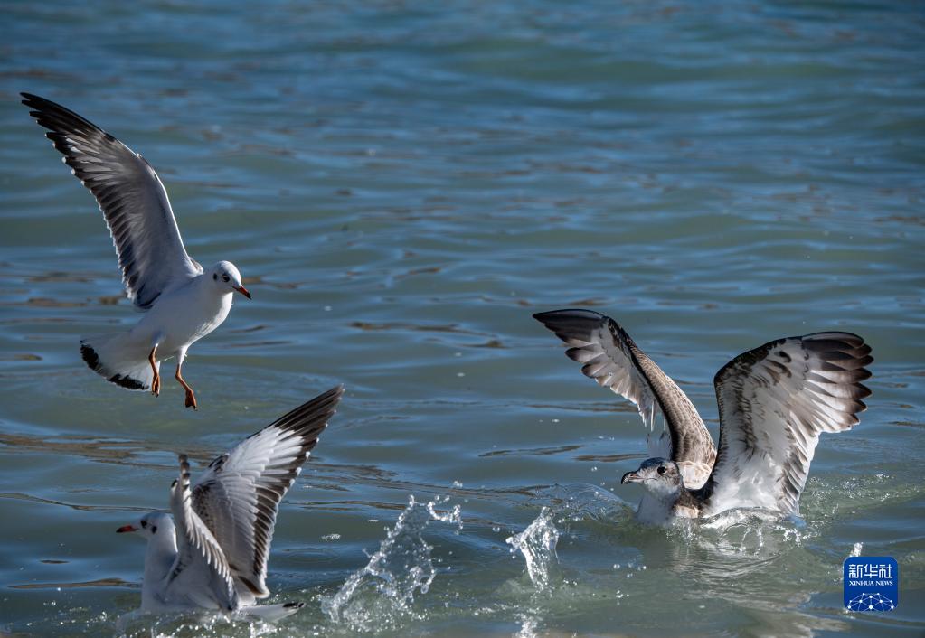 鳥兒在羊卓雍措湖面上“嬉戲”(11月16日攝)。新華社記者 孫非 攝