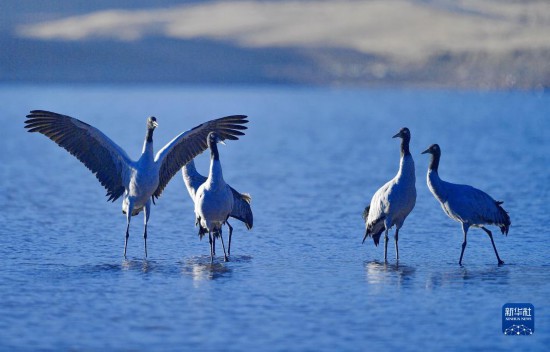近日,來到西藏拉薩市林周縣的黑頸鶴已達(dá)1500只左右,這里成為黑頸鶴越冬的樂園。