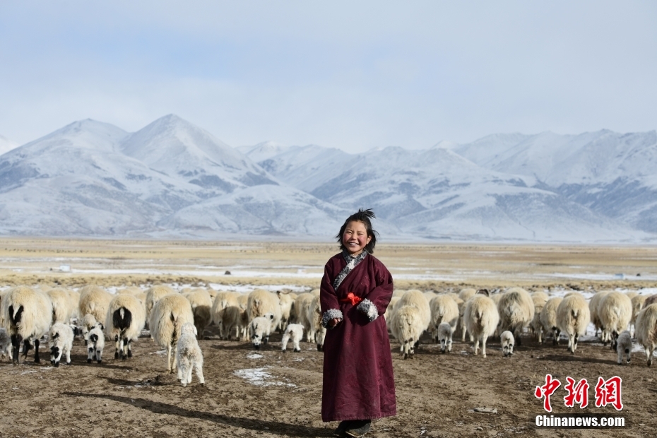 1月27日,當(dāng)雄縣龍仁鄉(xiāng)烏達村放牧的小姑娘。當(dāng)雄縣位于西藏自治區(qū)拉薩市北部,距拉薩市區(qū)170公里?!爱?dāng)雄”,藏語意為“天選牧場”,平均海拔約4200米,草場廣闊,土地肥沃。 中新社記者 貢嘎來松 攝