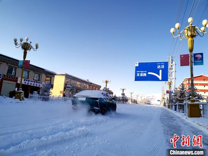 圖為大雪致甘德縣城道路積雪。馬長云 攝