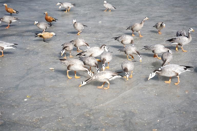“我們住在頓珠金融城,最近氣溫回暖,我和老伴每天都會早起到附近的公園散步。成群的候鳥與湛藍的天空,搭配遠處的雪景,很是養(yǎng)眼?!泵赚旑D珠帶著笑意說。