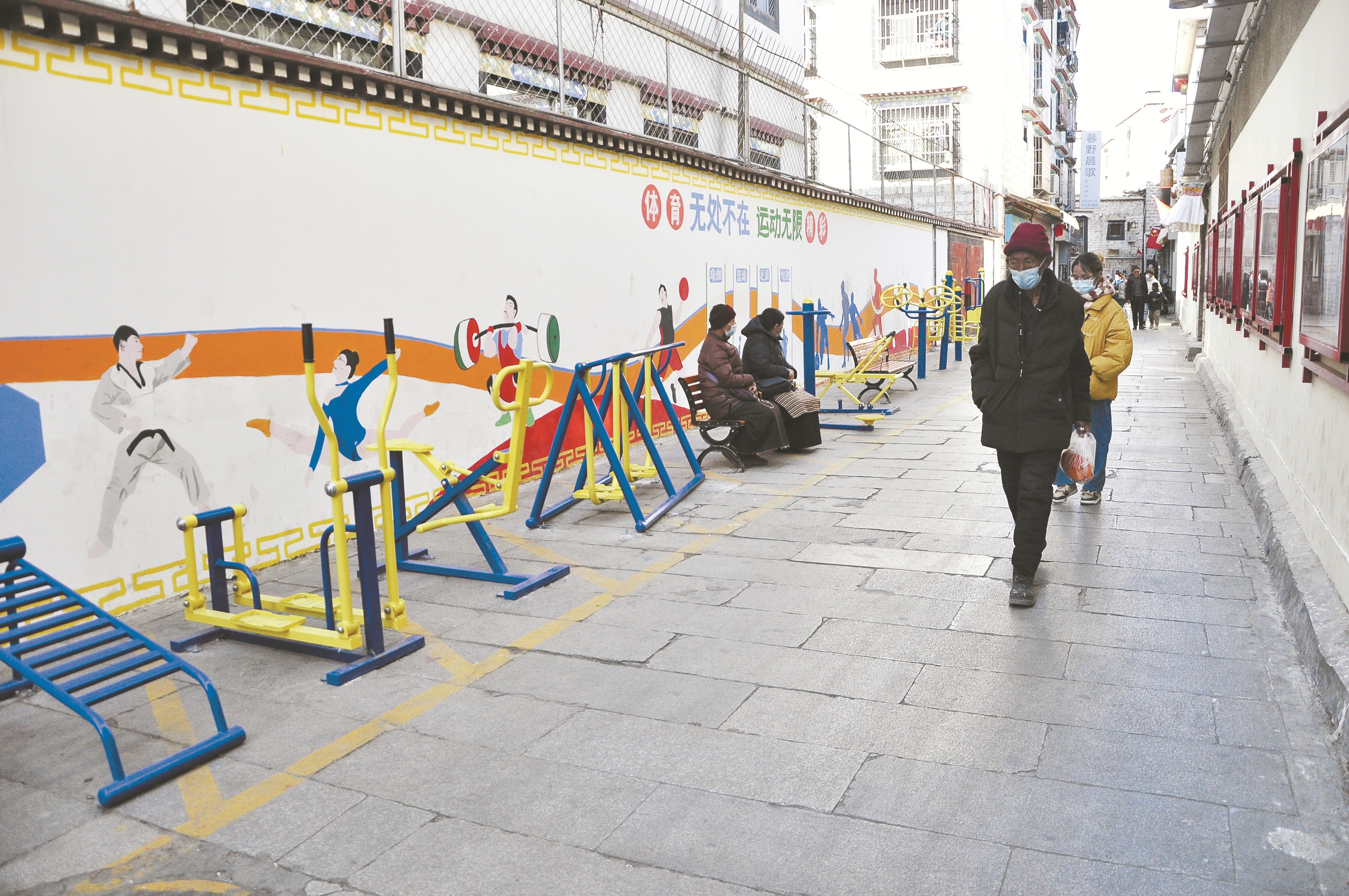 圖為居民群眾從繞賽社區(qū)干凈整潔的小巷經(jīng)過。拉薩融媒記者 趙耀鐵攝