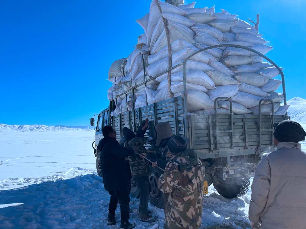 改則縣林草局工作人員把草料送到管護(hù)站,管理員們再把這些草料送到藏羚羊棲息比較多的地方。于是,接下來的兩天,工作人員們就一直在這片廣袤的草場上撒布草料,希望幫助藏羚羊們度過這個格外寒冷的冬天。前前后后,半個月下來,改則縣的工作人員撒出去十幾噸的草料,幫助很多藏羚羊度過了這個缺少食物的冬天。在改則縣,23個管護(hù)站,二百多名管護(hù)員,看管著十萬多平方公里的草場,他們對于轄區(qū)的草木生靈、萬水千山都很是熟悉。哪里常棲息著什么動物,他們多是信手拈來。