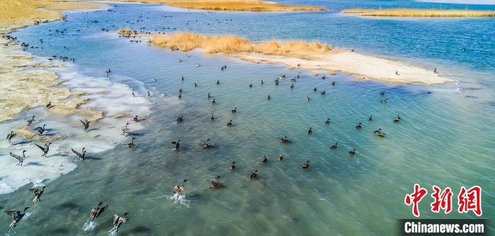 圖為格爾木濕地引無數(shù)野生鳥類棲息?!『螁⒔?攝