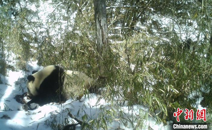 3月22日,大熊貓國(guó)家公園四川雅安市寶興縣蜂桶寨片區(qū)通報(bào)稱(chēng),近日,工作人員在收集野外紅外線相機(jī)時(shí),發(fā)現(xiàn)拍攝到了野生大熊貓?jiān)谘┑刂泻人恼滟F影像。