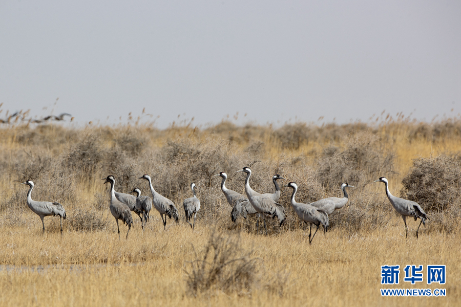 攝影愛(ài)好者在都蘭縣巴隆鄉(xiāng)境內(nèi)拍攝到的灰鶴。新華網(wǎng) 松太加 攝