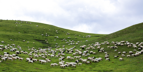 三江集團(tuán)湖東種羊場(chǎng)公司的羊群在天然牧場(chǎng)上覓食。資料照片