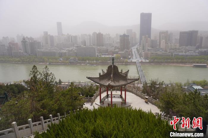 圖為3月24日,從蘭州市白塔山上,眺望被沙塵籠罩的黃河對(duì)岸城區(qū)。 九美旦增 攝