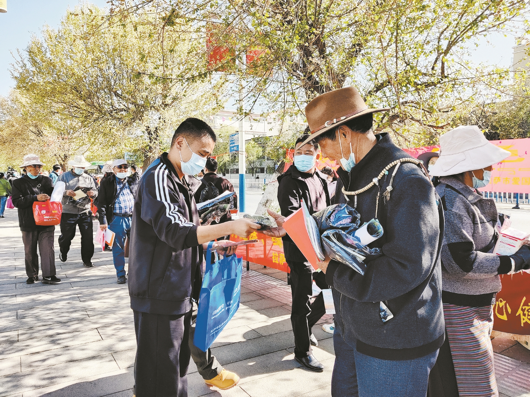 市民索朗曲珍說:“我從這邊路過時,看到很多單位在宣傳健康知識,就過來領了一些宣傳品和宣傳冊,為爸媽開了一些腸胃藥品。在生活中,我們每個人都要多了解疾病的預防知識,同時注意個人衛(wèi)生。”