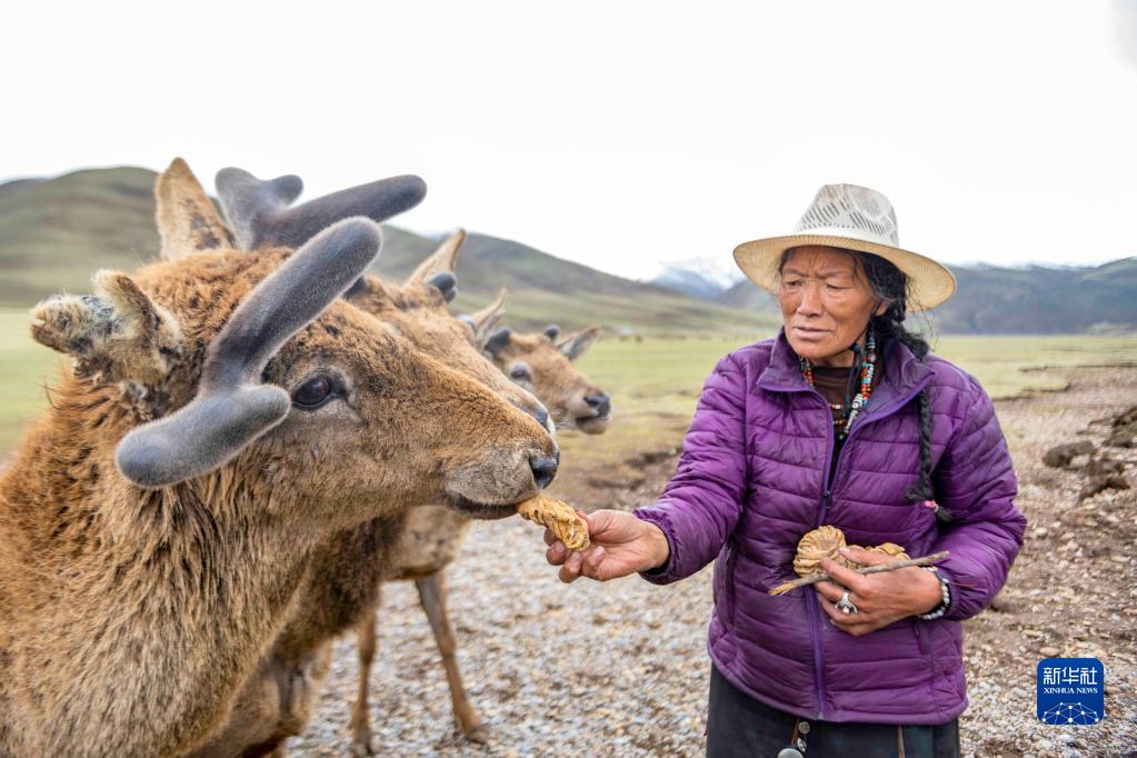 20世紀(jì)70年代,家住昌都市類烏齊縣長毛嶺鄉(xiāng)協(xié)塘村的向秋拉姆發(fā)現(xiàn)并照顧了3只離群的小馬鹿,從此與馬鹿結(jié)緣。40多年來,向秋拉姆悉心照料數(shù)百只馬鹿。目前,她的兩個兒子延續(xù)著照顧馬鹿的使命。