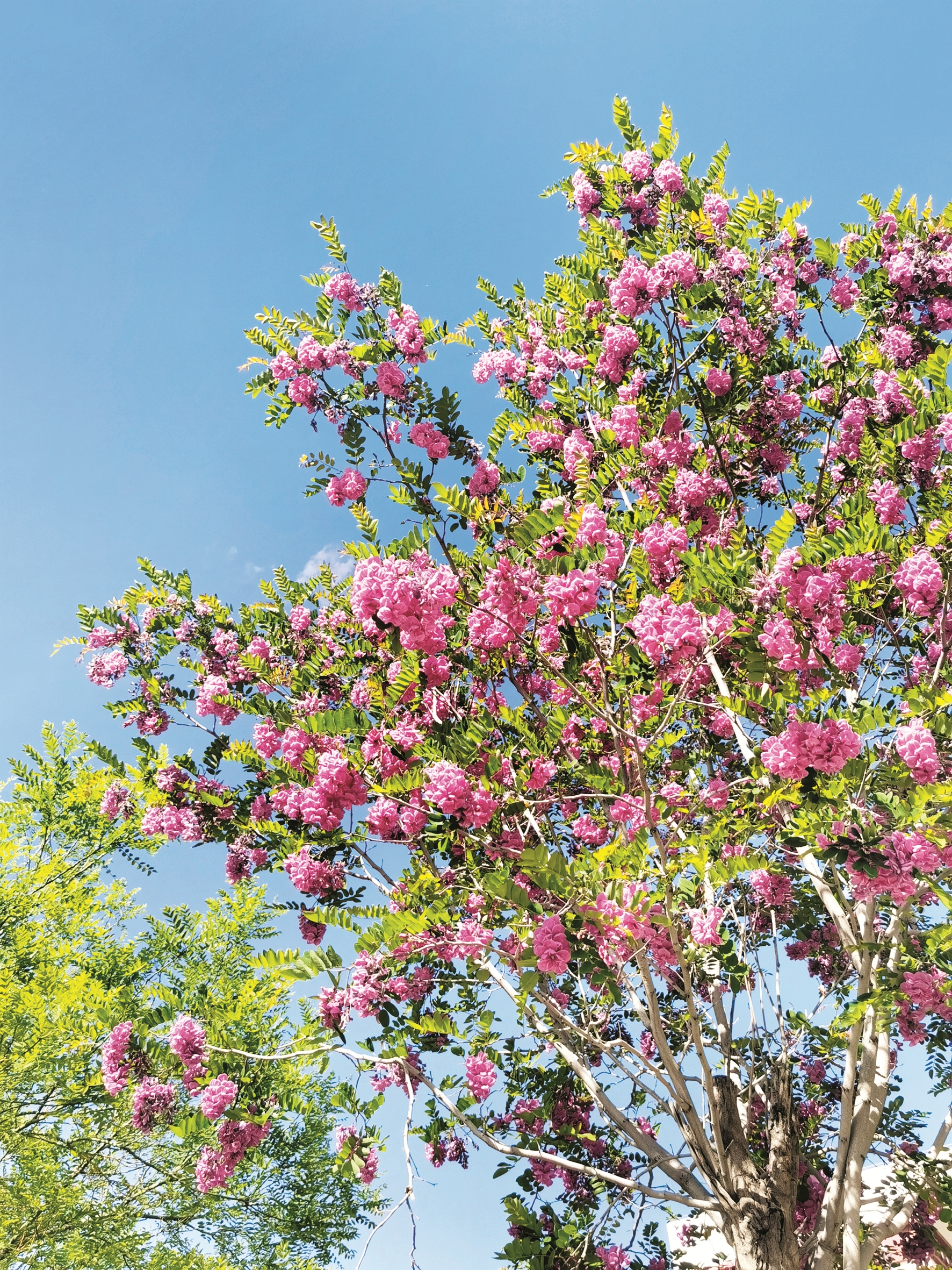 眼下,在拉薩街道邊、公園里,紅色的槐花正在怒放。走在路上,一股清香襲來,讓人頓感心曠神怡。抬頭仰望,紅槐花高高地掛在枝頭,一串串、一簇簇,千朵萬朵隨風搖曳、令人如癡如醉。
