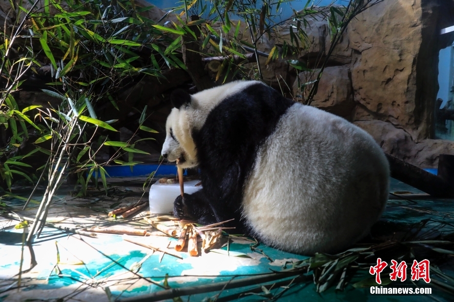 7月6日,四川成都動物園,一只大熊貓在冰塊旁吃竹筍。當(dāng)日,成都市高溫天氣持續(xù)。 [詳細(xì)] -