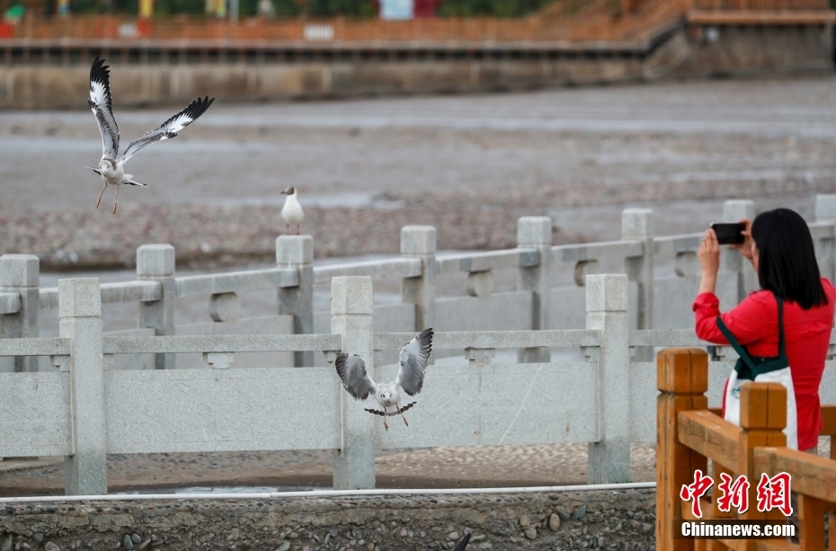 8月11日,青海省海北藏族自治州剛察縣,沙柳河國家濕地公園內(nèi)的大量水鳥吸引游客。 中新社記者 賈天勇 攝