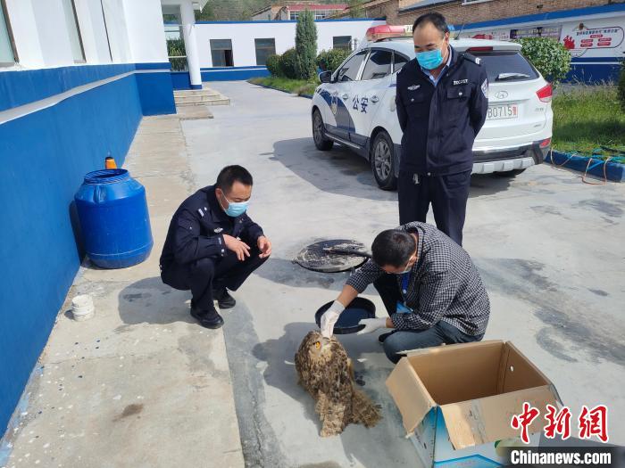 隨后,經聯(lián)系互助縣野生動物保護管理部門工作人員鑒定,該貓頭鷹學名為雕鸮,屬國家二級重點保護野生動物。由于該貓頭鷹眼睛受傷,已移交互助縣野生動物保護管理部門對受傷的貓頭鷹進行治療后做相應處理。