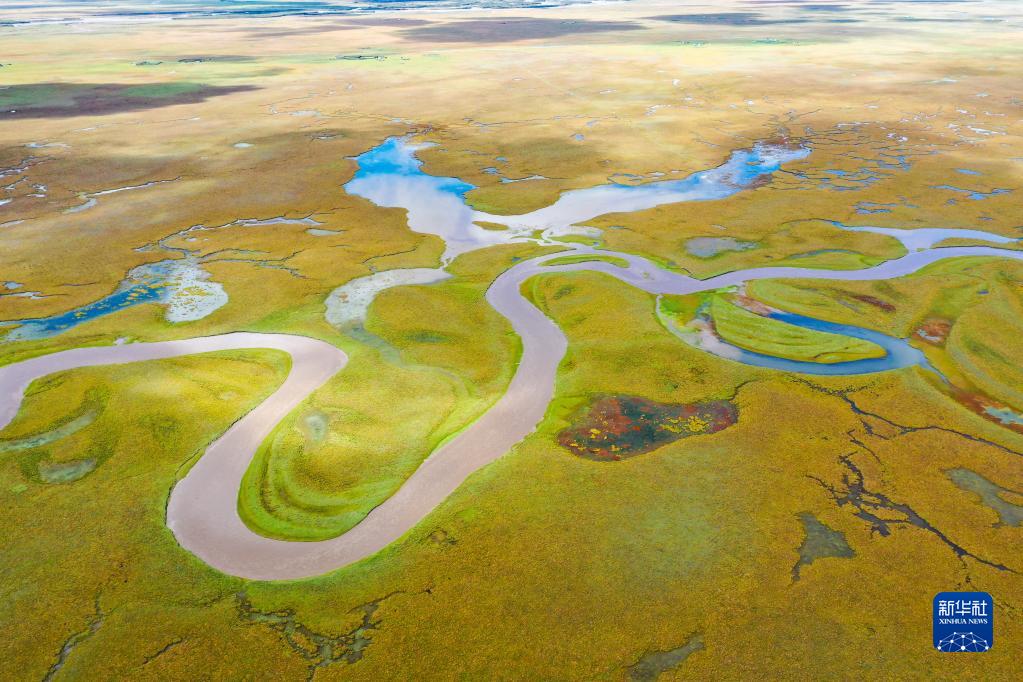 9月17日拍攝的阿萬倉濕地風(fēng)光(無人機照片)。新華社記者 郎兵兵 攝